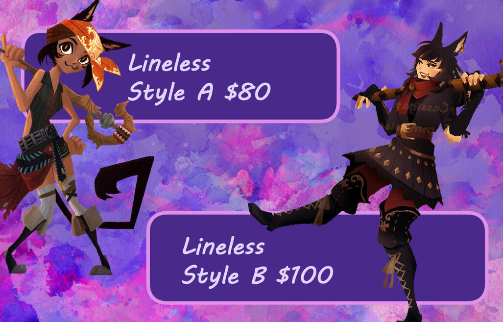 I reserve the rights to increase the price if your character or request is difficult or intricate. This mostly applies to armor and weapons, but usually isn't the case.